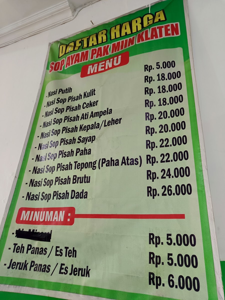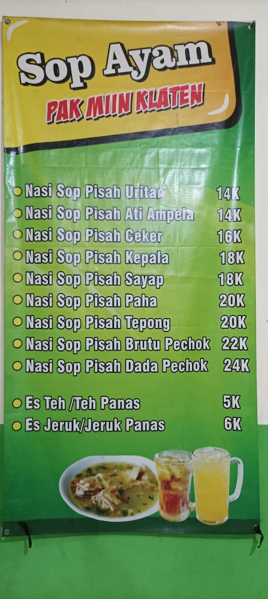 CHICKEN SOUP Mr.Min Klaten stands out as a comforting culinary gem in Tangerang Selatan, offering a soulful taste of traditional Klaten-style chicken soup. Located on Jl. Bintaro Utama 5 No.77, this soup restaurant is praised for its fresh, fragrant chicken broth that instantly warms you, especially on cool or rainy days. The menu showcases a variety of options, from tender chicken breast to rich offal choices like telur and jeroan, satisfying different cravings.